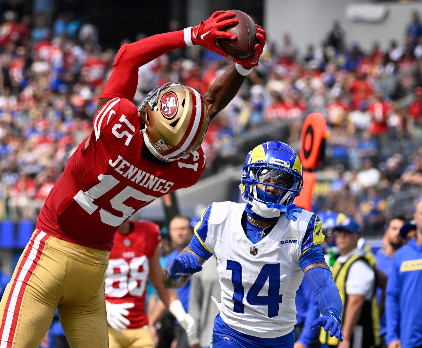 This latest chapter, the summer of contention between Jauan and the organization, has been turbulent. A calf injury kept him out for much of training camp and halted negotiations on his demanded deal. Upon his return, just in time for the season, the 49ers granted him a small raise. It wasn’t what he wanted, but he turned down a little extra to bet on himself to hit free agency next offseason. While the future remains blurry, adversity is no stranger to Jennings.