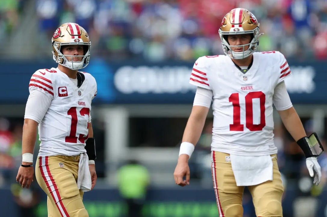 The details surrounding Purdy’s injury have been odd to say the least. He came back in week four and struggled, just to be a weekly “we’ll see” since, without any true timeline. This is not his first significant injury, either. Clearly, Shanahan and John Lynch were conformable enough with his health issues to commit substantial money to Purdy, but his injury history is adding up.